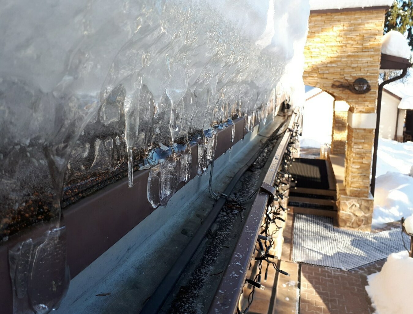 Без системы антиобледенения (например, нагревательных кабелей) талая вода не может свободно стекать с крыши, что приводит к ее замерзанию в желобах и на карнизах.